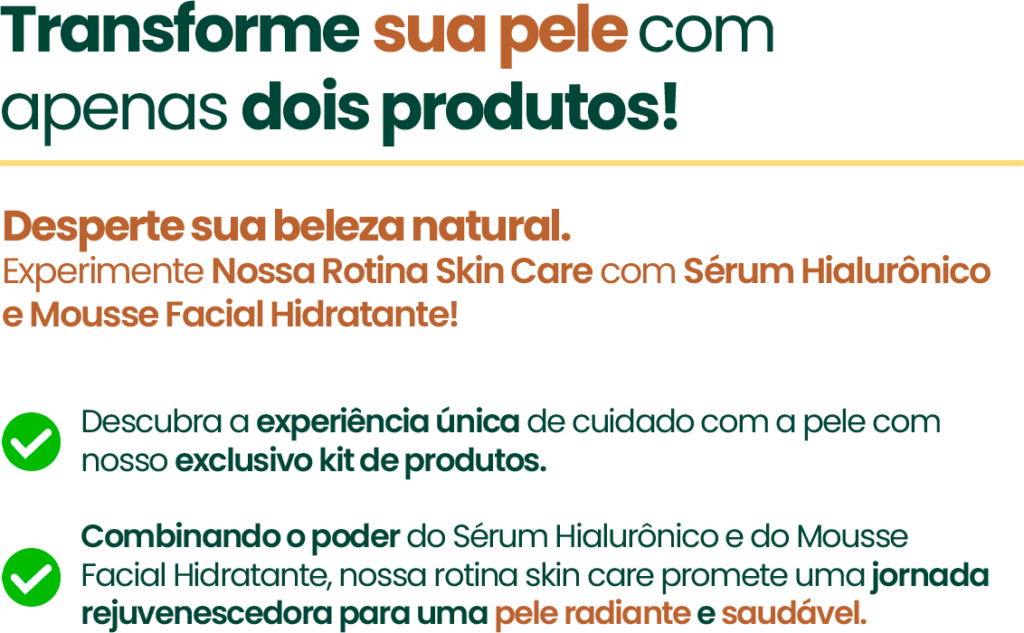 3 Serum + 1 Frasco de Mousse de Limpeza Facial de BRINDE com 50% OFF (desconto na compra do tratamento)