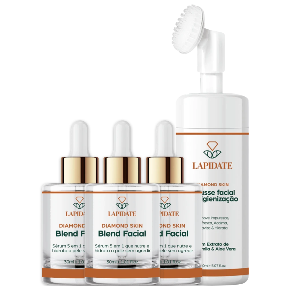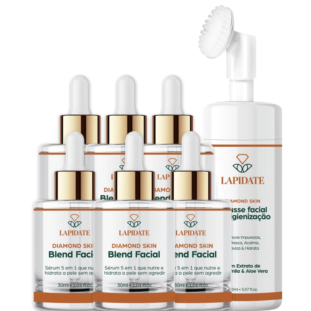 A fórmula do Blend 5 em 1 da Lapidate contém a exclusiva tecnologia DIAMOND-SKIN® que proporciona um toque aveludado deixando a sua pele mais lisa e revitalizada com uma mega hidratação 3D com resultados já nas primeiras semanas de uso.